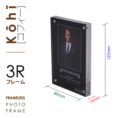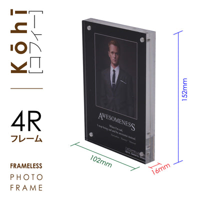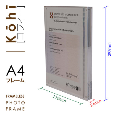 KOHI Frameless Photo Frames are based on international standard photographic print sizes (nR) and paper sizes (An) used in photographic printing.